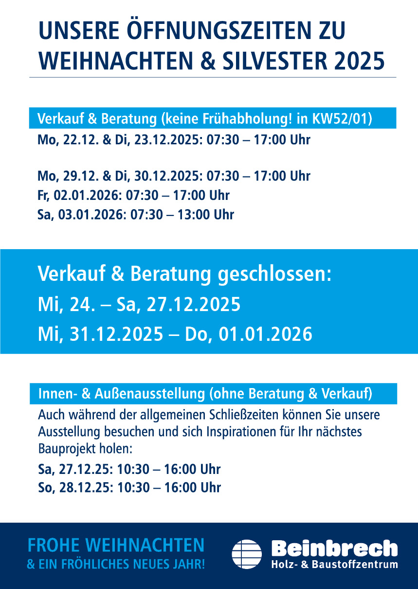 Öffnungszeiten Ausstellung (keine Beratung + kein Verkauf):